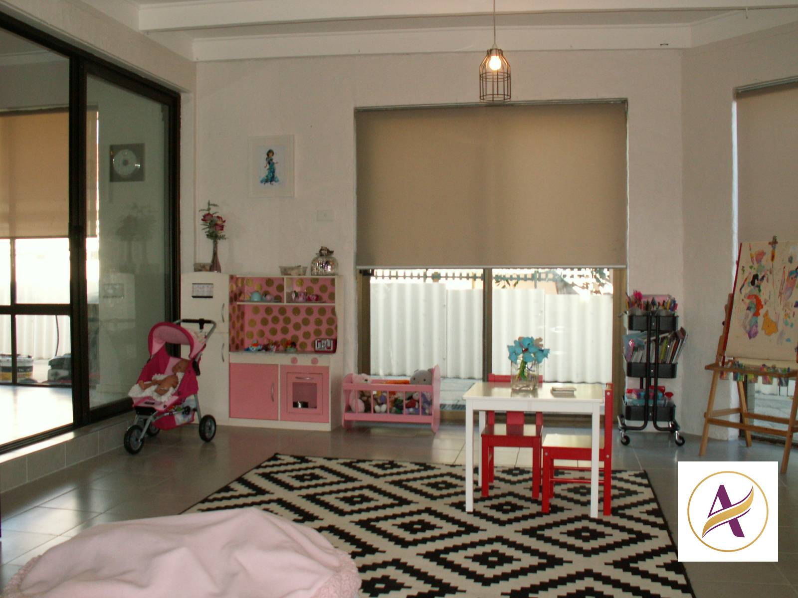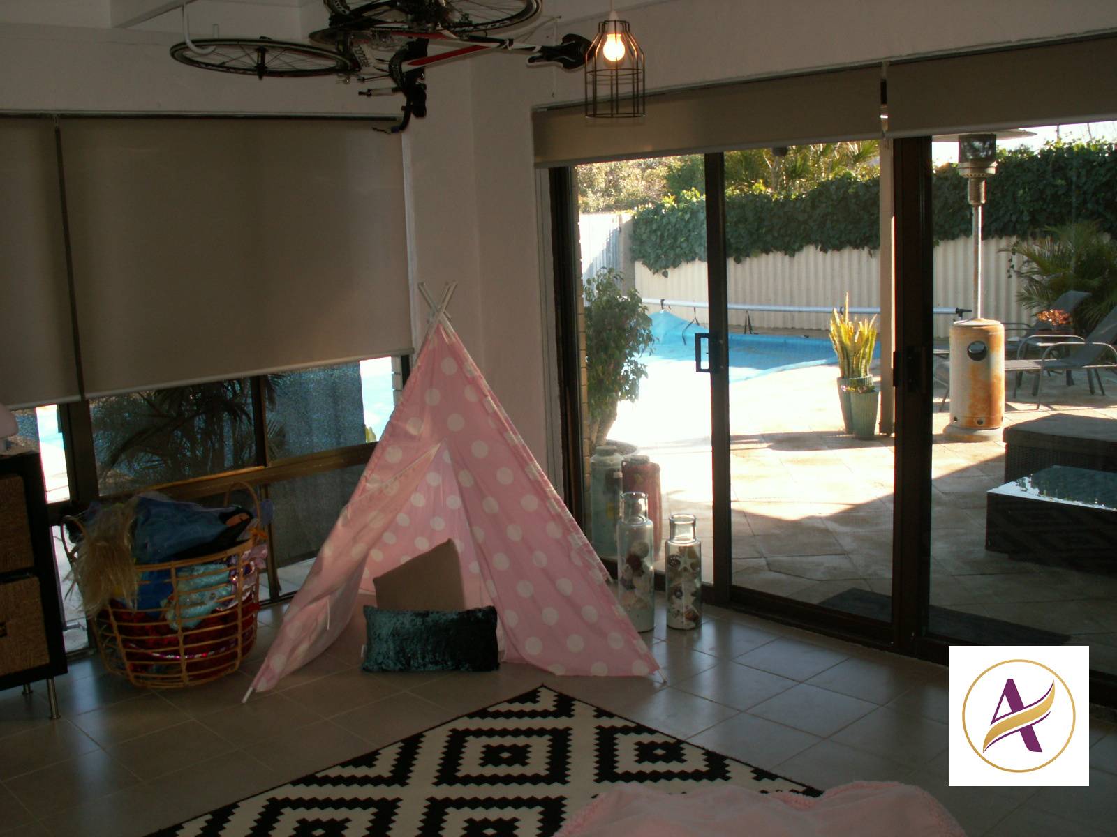 * Step down into large family/games room leading out to patio area