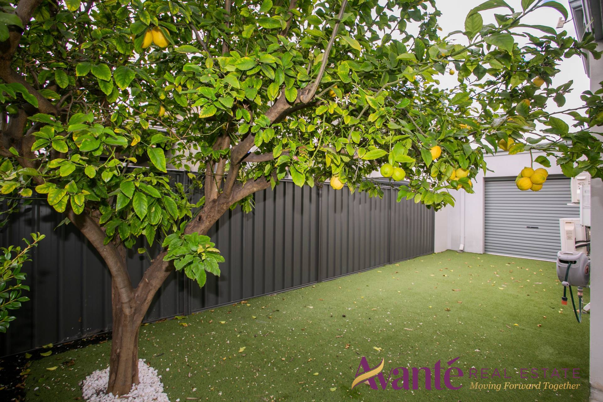 Established hedge trees, Lemon tree with lots of lemons, auto reticulation and easy care garden